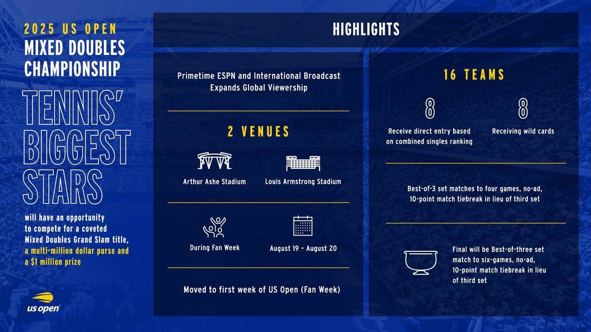 美国网球协会(USTA)对此回应称,此举是为了吸引顶尖单打球员参赛。USTA执行总监兼首席执行官卢·舍尔表示:“我们的目标是让这项运动中最具影响力的球员参与双打,并通过不同的赛制展现他们的合作,这将是一次激动人心的尝试。我们承认变化总是充满挑战,但总体而言,我们相信这一全新改制的混双赛事将为混双项目带来更高的关注度,并为激励更多人参与和推动网球运动发展创造更大机会。”